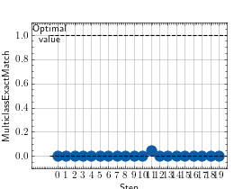 >>> # Example plotting multiple values >>> from torch import rand, randint >>> from torchmetrics.classification import MultilabelExactMatch >>> metric = MultilabelExactMatch(num_labels=3) >>> values = [ ] >>> for _ in range(10): ... values.append(metric(randint(2, (20, 3, 5)), randint(2, (20, 3, 5)))) >>> fig_, ax_ = metric.plot(values)