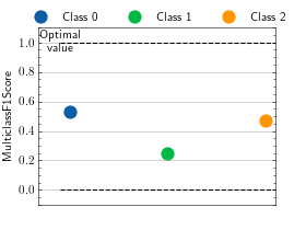 >>> from torch import randint >>> # Example plotting a single value per class >>> from torchmetrics.classification import MulticlassF1Score >>> metric = MulticlassF1Score(num_classes=3, average=None) >>> metric.update(randint(3, (20,)), randint(3, (20,))) >>> fig_, ax_ = metric.plot()