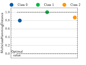 >>> # Example plotting a single value per class >>> from torch import randint >>> from torchmetrics.classification import MulticlassHammingDistance >>> metric = MulticlassHammingDistance(num_classes=3, average=None) >>> metric.update(randint(3, (20,)), randint(3, (20,))) >>> fig_, ax_ = metric.plot()
