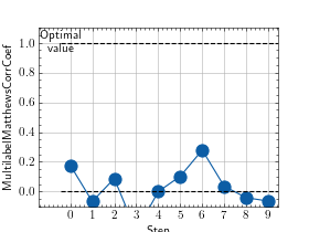 >>> from torch import rand, randint >>> # Example plotting multiple values >>> from torchmetrics.classification import MultilabelMatthewsCorrCoef >>> metric = MultilabelMatthewsCorrCoef(num_labels=3) >>> values = [ ] >>> for _ in range(10): ... values.append(metric(randint(2, (20, 3)), randint(2, (20, 3)))) >>> fig_, ax_ = metric.plot(values)