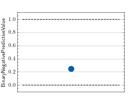 \[\text{Negative Predictive Value} = \frac{\text{TN}}{\text{TN} + \text{FP}}\]Where \(\text{TN}\) and \(\text{FP}\) represent the number of true negatives and false positives respectively. The metric is only proper defined when \(\text{TN} + \text{FP} \neq 0\). If this case is encountered a score of 0 is returned.