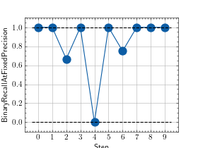 >>> metric = BinaryRecallAtFixedPrecision(min_precision=0.5, thresholds=5)