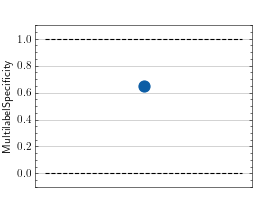 >>> from torch import tensor >>> from torchmetrics.classification import MultilabelSpecificity >>> target = tensor([[0, 1, 0], [1, 0, 1]]) >>> preds = tensor([[0, 0, 1], [1, 0, 1]]) >>> metric = MultilabelSpecificity(num_labels=3) >>> metric(preds, target) tensor(0.6667) >>> mls = MultilabelSpecificity(num_labels=3, average=None) >>> mls(preds, target) tensor([1., 1., 0.])