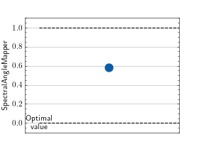 >>> # Example plotting single value >>> from torch import rand >>> from torchmetrics.image import SpectralAngleMapper >>> preds = rand([16, 3, 16, 16]) >>> target = rand([16, 3, 16, 16]) >>> metric = SpectralAngleMapper() >>> metric.update(preds, target) >>> fig_, ax_ = metric.plot()