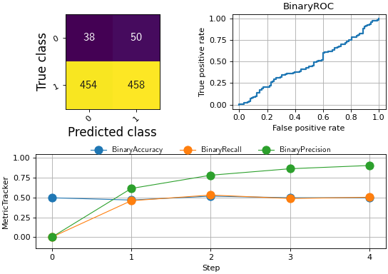 Do note that metrics that do not return simple scalar tensors, such as ConfusionMatrix, ROC that have specialized visualization does not support plotting multiple steps, out of the box and the user needs to manually plot the values for each step.