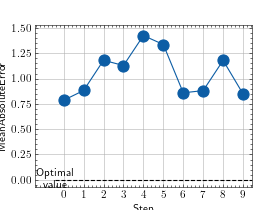 >>> from torch import randn >>> # Example plotting multiple values >>> from torchmetrics.regression import MeanAbsoluteError >>> metric = MeanAbsoluteError() >>> values = [] >>> for _ in range(10): ... values.append(metric(randn(10,), randn(10,))) >>> fig, ax = metric.plot(values)